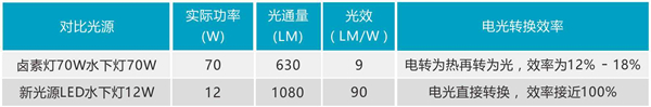 LED水下燈比鹵素水下燈省電80%以上,大大節省了用電費用。